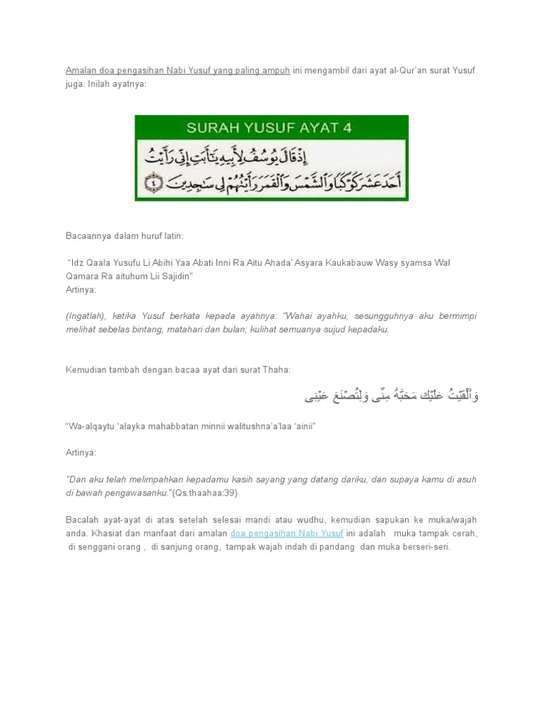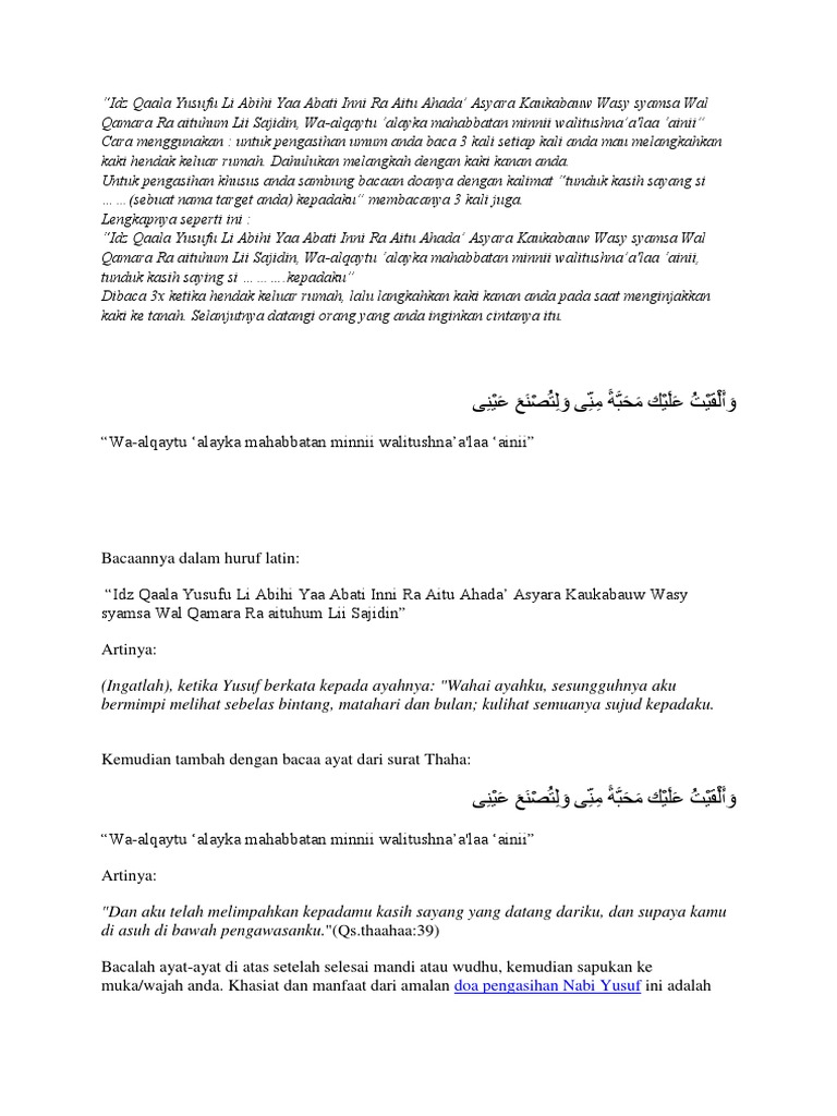 Amalan Doa Pengasihan Nabi Yusuf Yang Paling Ampuh Pdf